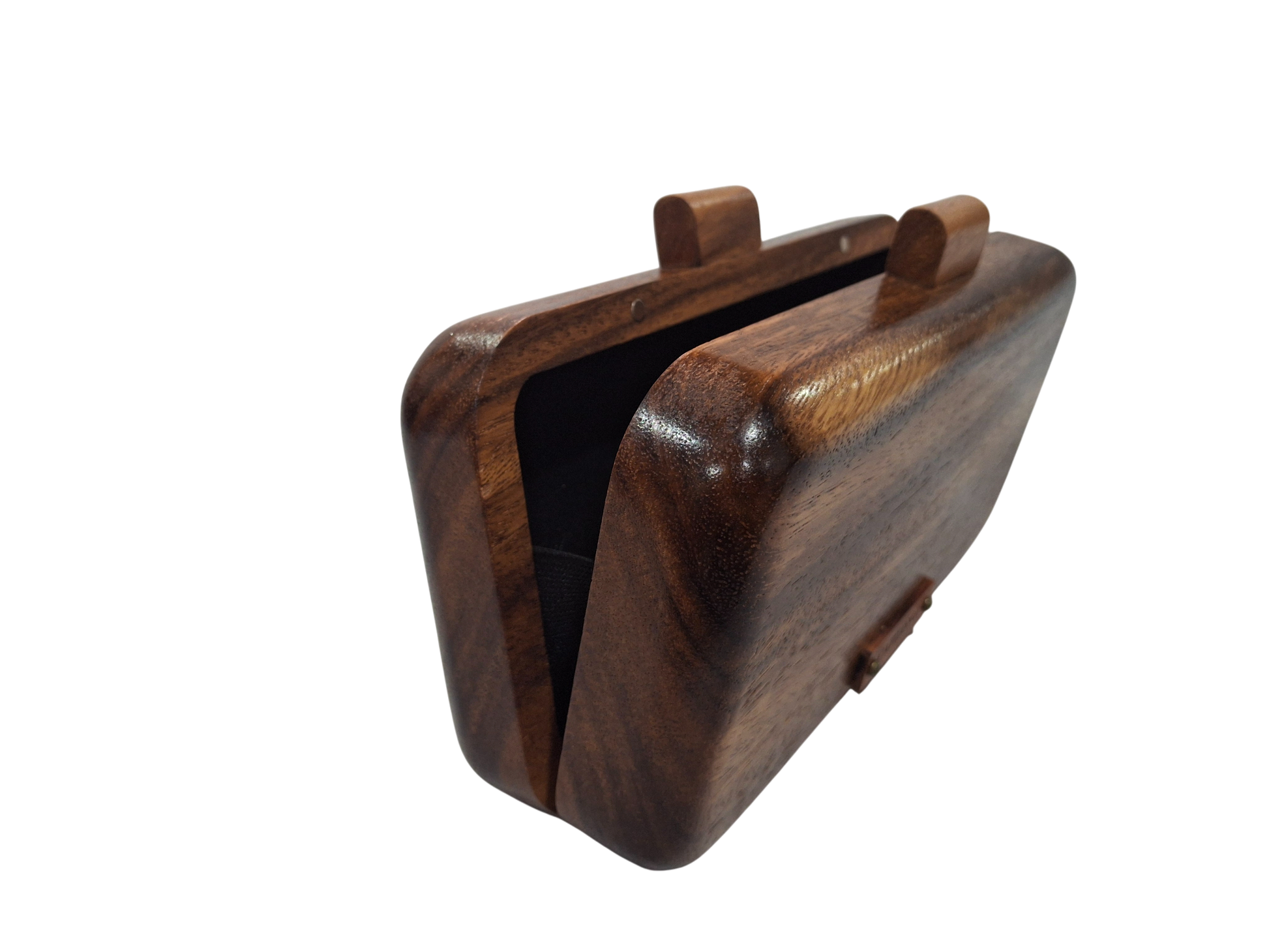 Step into elegance with Allure, a refined wooden clutch that celebrates the art of subtle luxury. Handcrafted from warm-toned tropical Barbadian wood, each piece tells its own story through rich, organic striations that highlight the natural beauty of the grain.