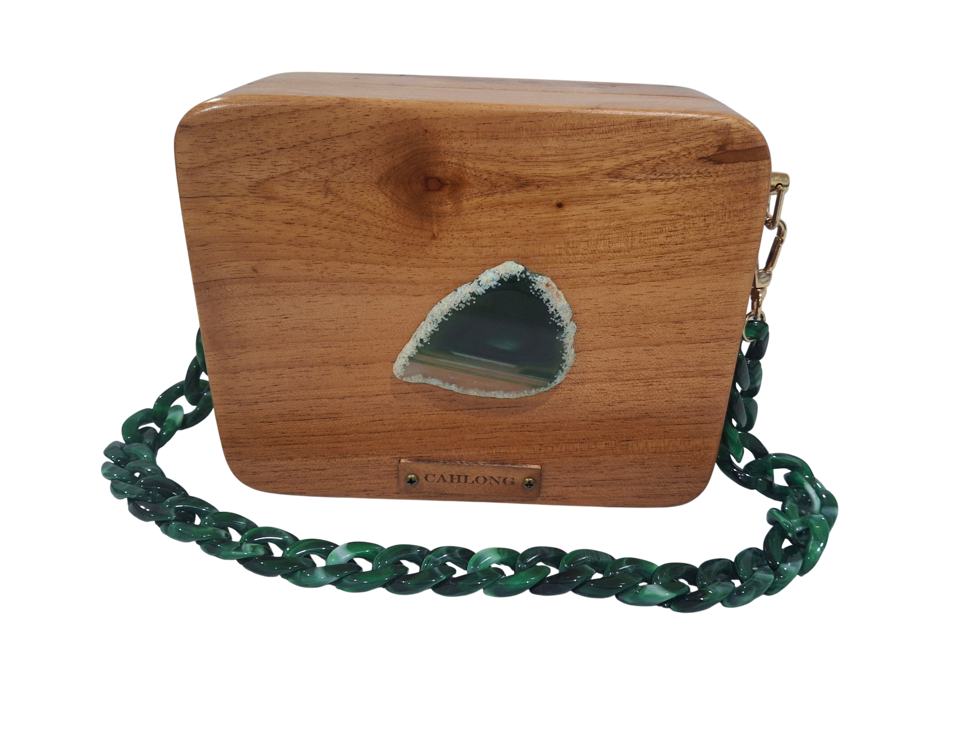 The Chloe Handbag combines timeless elegance with the raw allure of nature. At the forefront of this exquisite wooden creation lies a stunning piece of Agate Geode, a marvel of nature's artistry. Its mesmerizing hues and intricate patterns serve as a captivating focal point, drawing admiration wherever you go.
