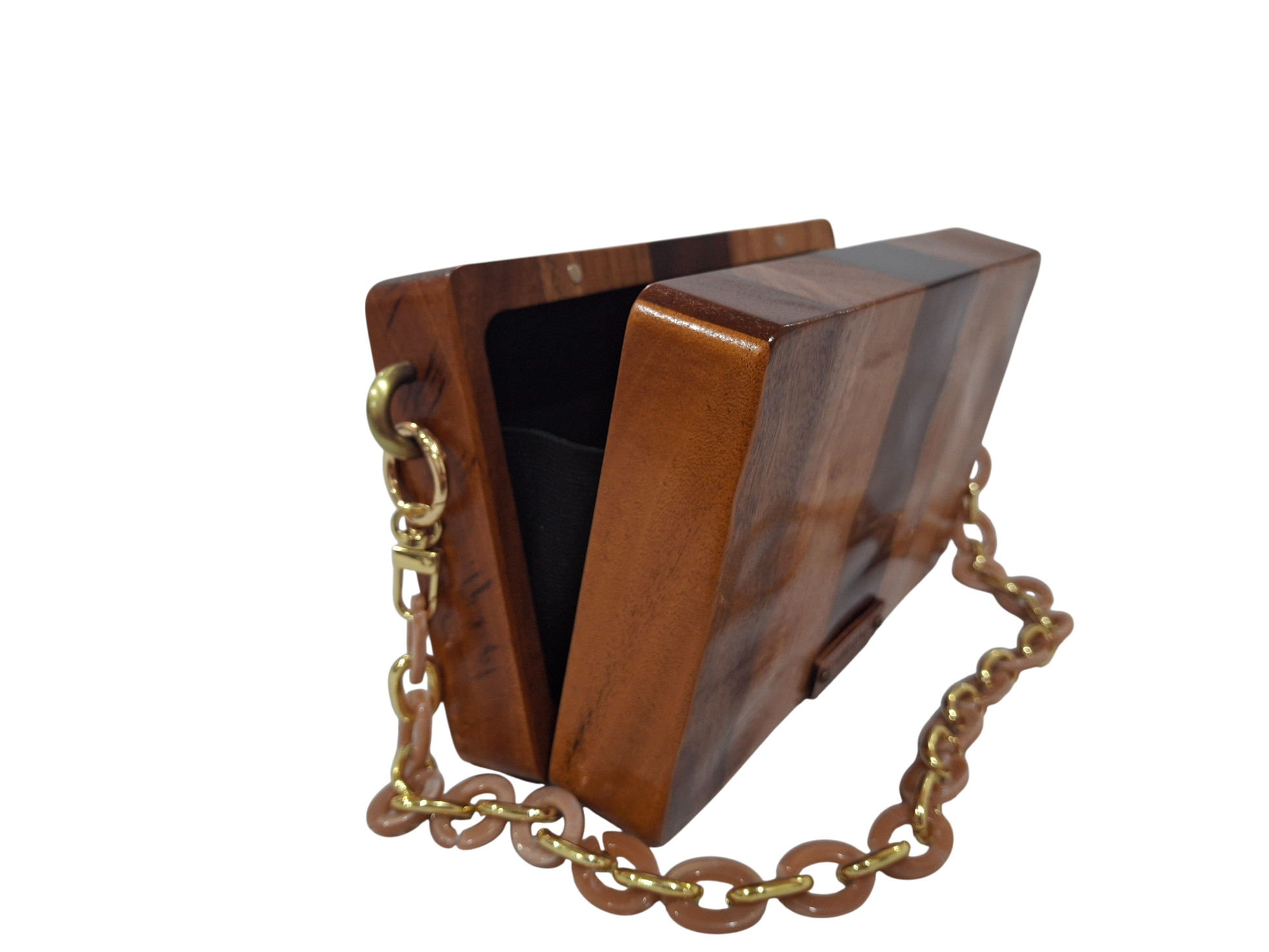 The Gabi laminated, textured wooden handbag is a fusion of versatility, sophistication, and texture, meticulously crafted from Barbados tropical hardwoods. With its refined lines and attention to detail, this handbag is a true masterpiece that seamlessly transitions from day to night with effortless grace. The vibrant colours of the laminated wood along with the carved texture adds depth to the design of the Gabi, making it a fashion accessory where every wood grain adds depth and dimension to the design, enhancing its visual appeal and making it a true head-turner in any fashion setting.