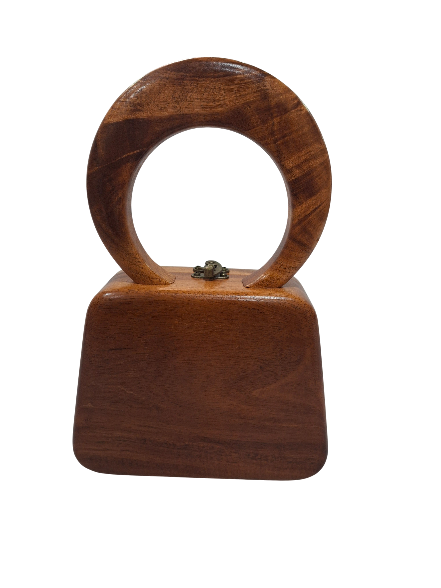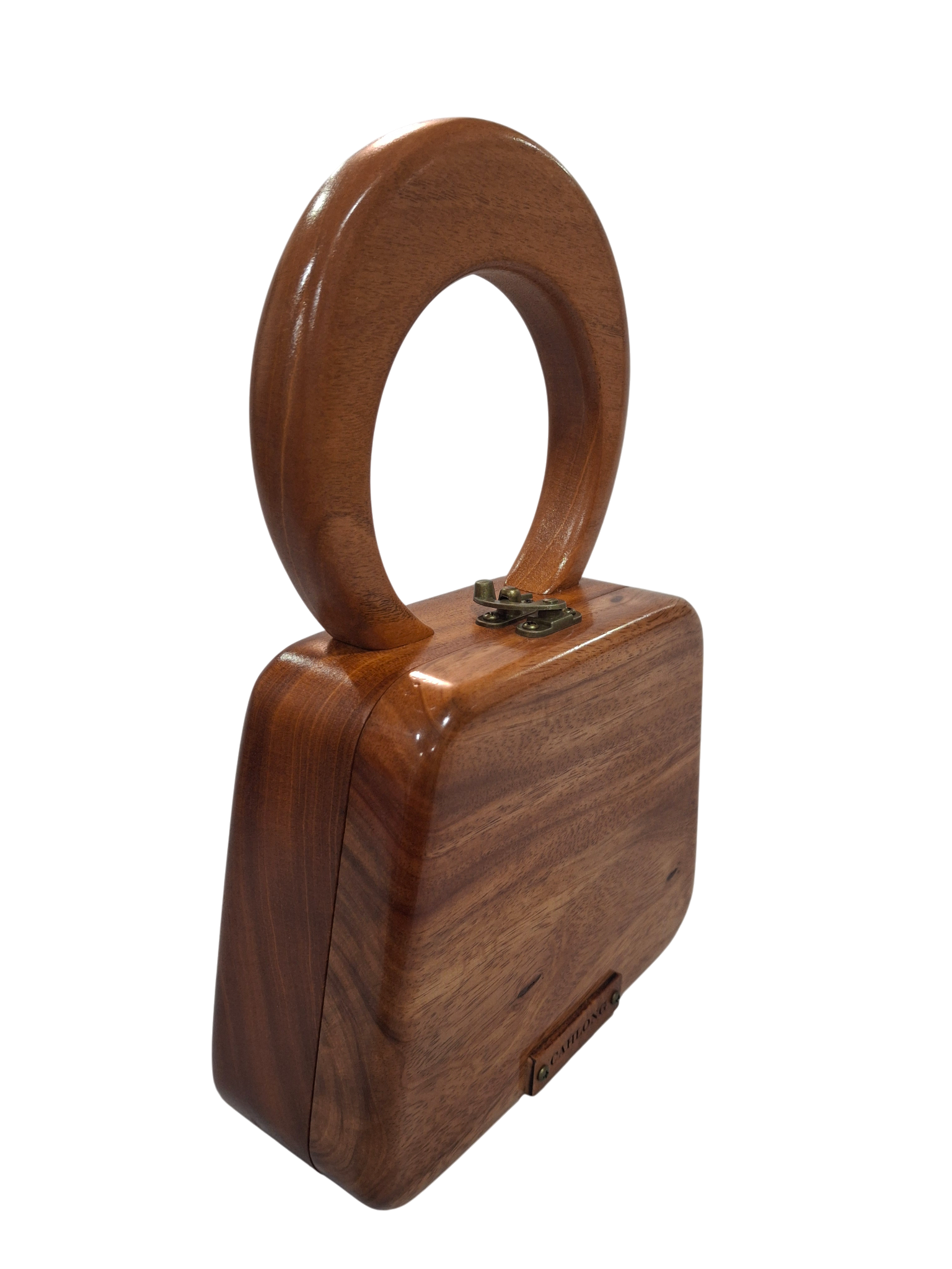 Introducing the Traveller: a sophisticated wooden handbag that is as much a statement piece as it is a functional accessory. This handbag is meticulously crafted from the finest Barbados Mahogany and Pride of India wood and embodies timeless elegance and grace.
