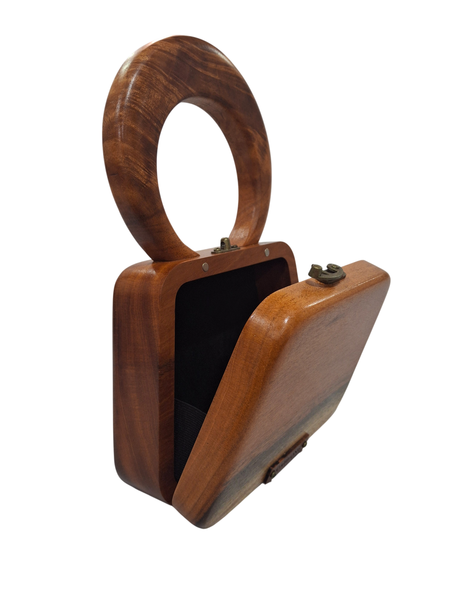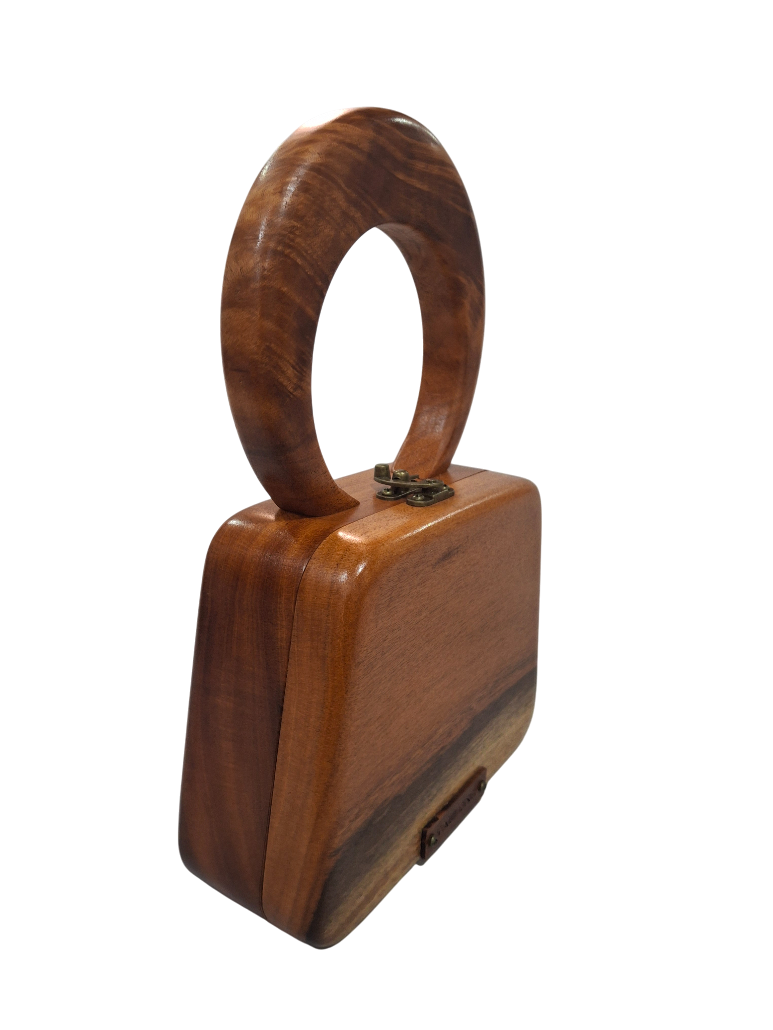 Introducing the Traveller: a sophisticated wooden handbag that is as much a statement piece as it is a functional accessory. This handbag is meticulously crafted from the finest Barbados Mahogany and embodies timeless elegance and grace.