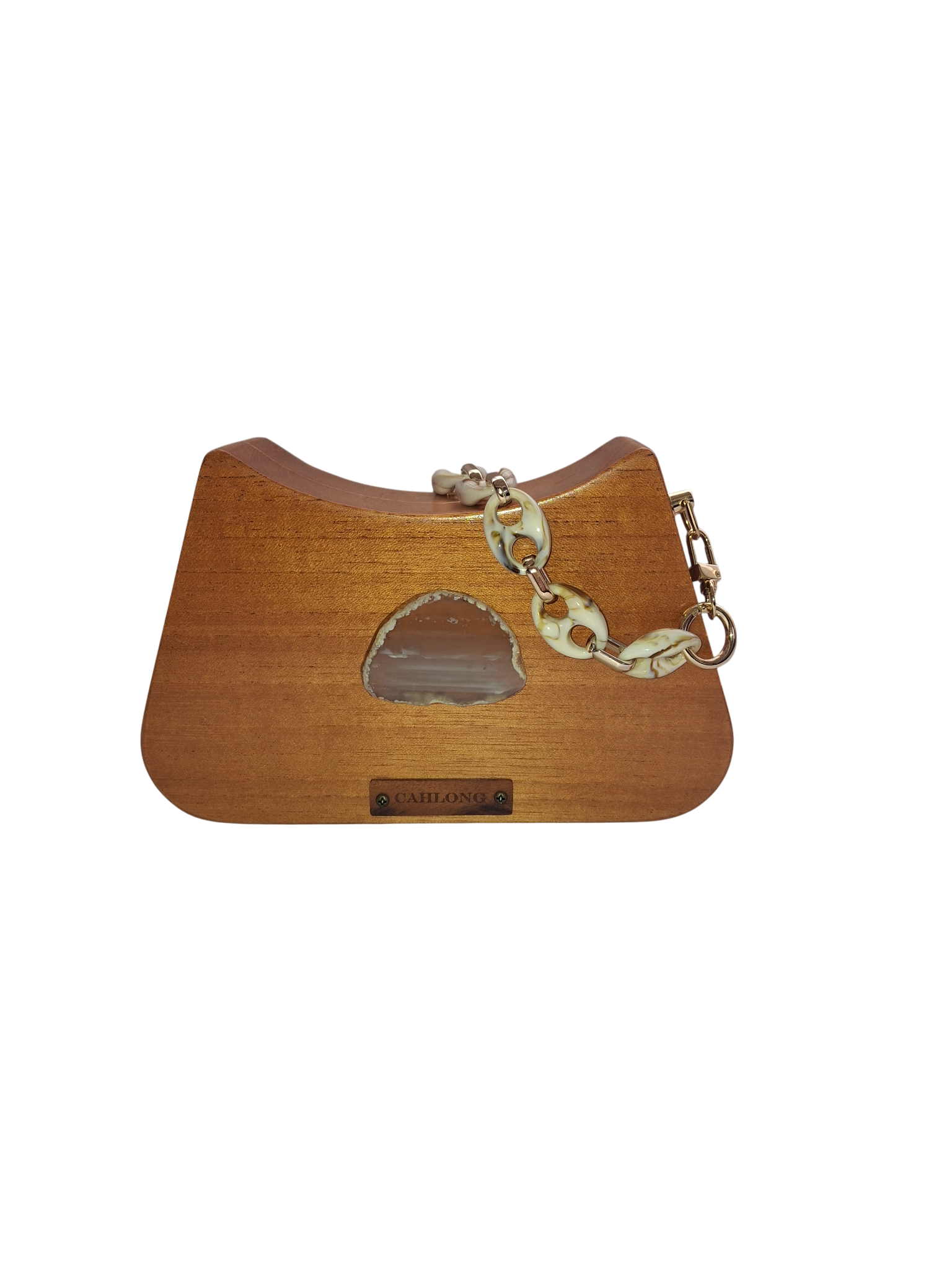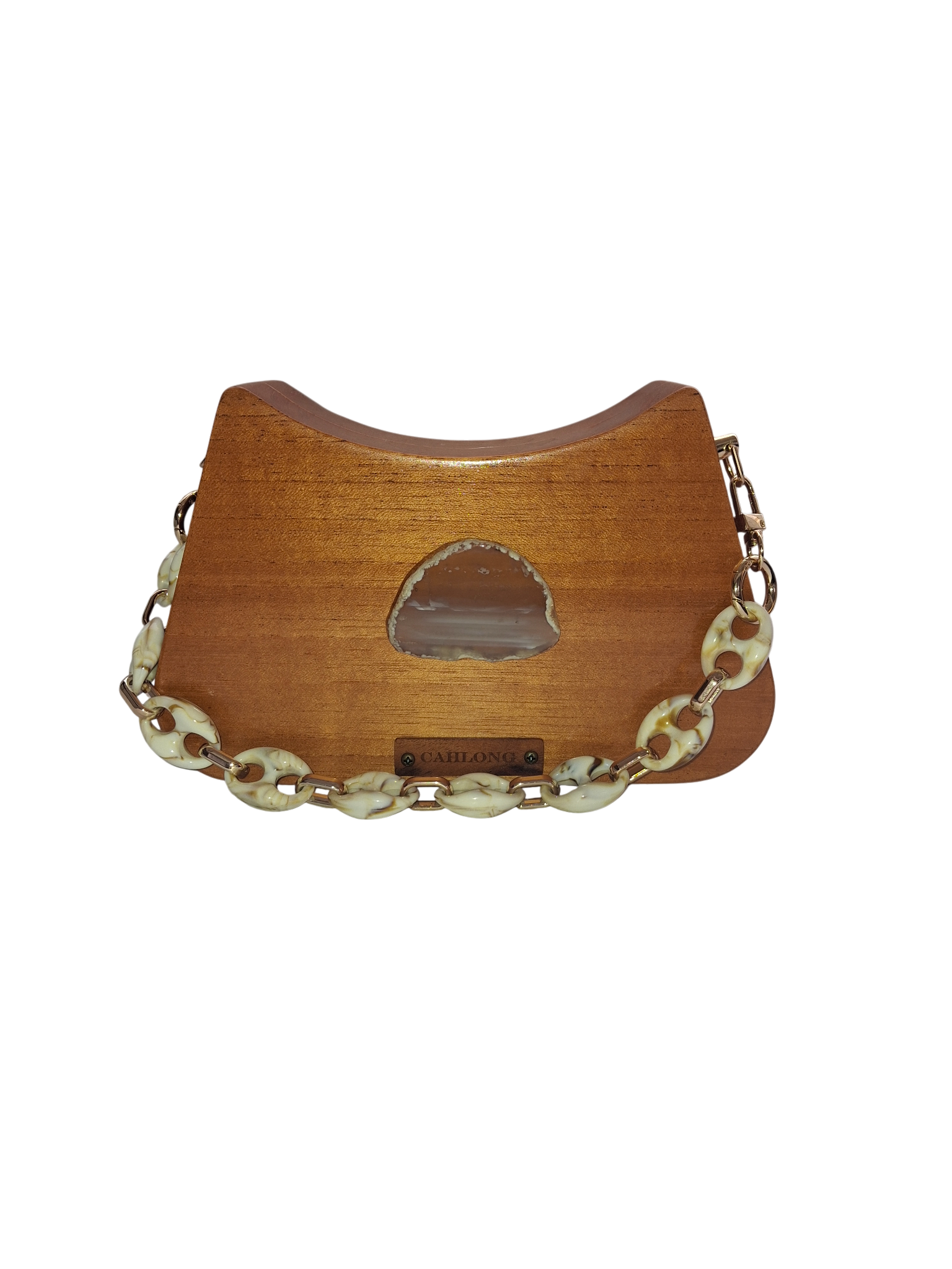 Set sail with pure style and elegance with our nautical-Inspired Viking wooden handbag. Crafted with meticulous care and attention to detail, this handbag captures the essence of seaside chic while staying true to the trendiness of wooden accessories for any occasion. This Viking handbag has a striking Geode slice on the front, adding to its natural appeal.